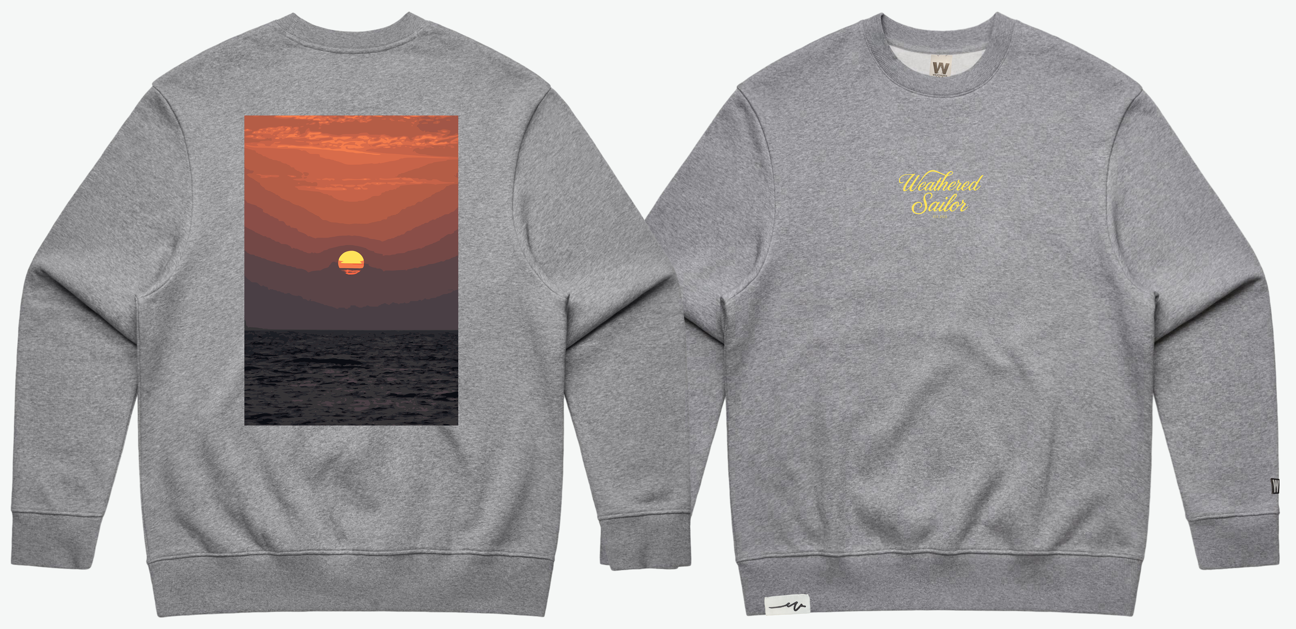 Puff-embroidered “Weathered Sailor” script centered on the chest — a vintage-inspired accent that blends timeless design with contemporary refinement.