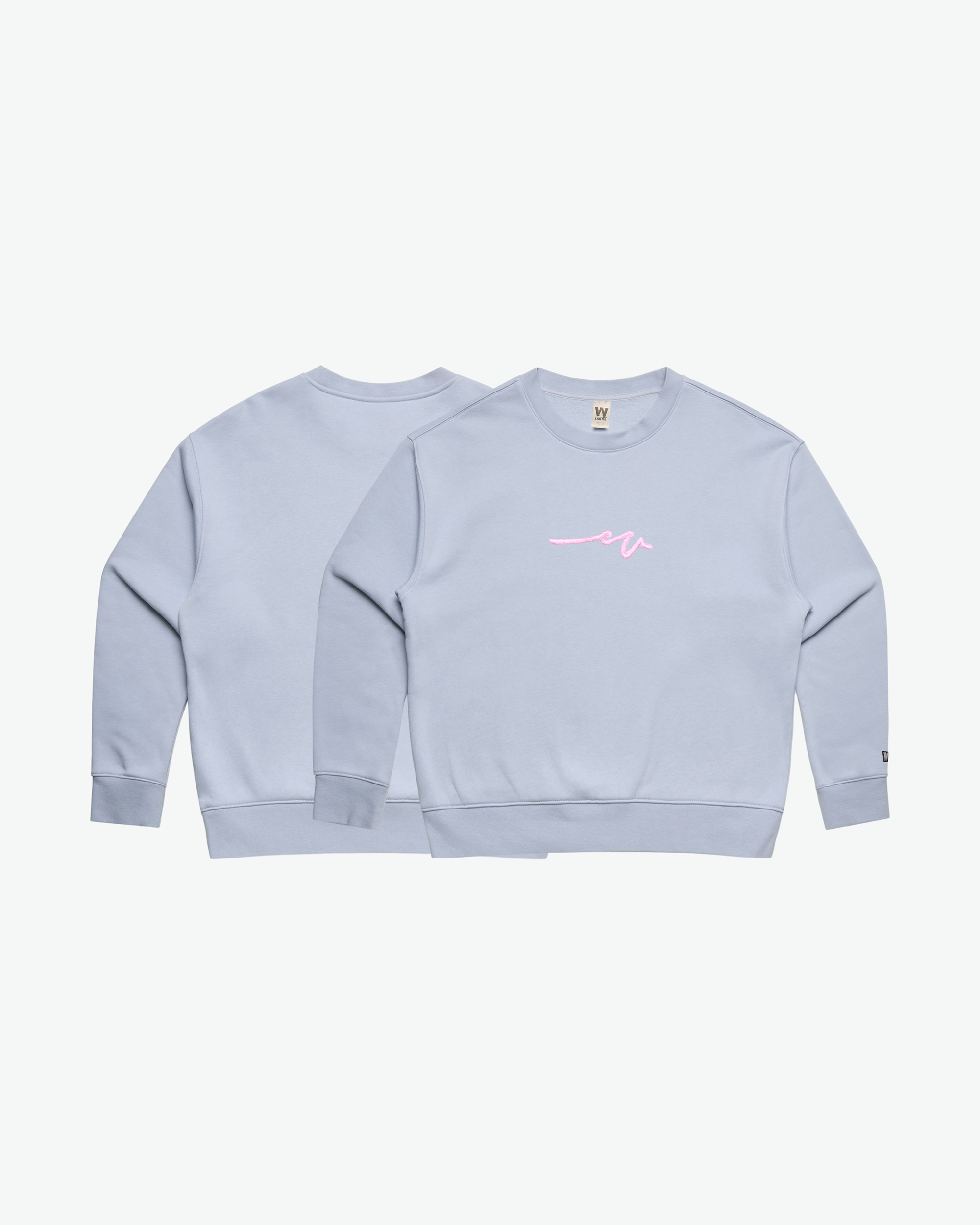 The baby blue puff satin embroidery of the sketchy W brings a cool, refined contrast to each colorway, catching light with subtle depth and sheen. Finished with the OG W patch on the sleeve and a satin inside neck label, every detail is intentional — understated yet full of character.