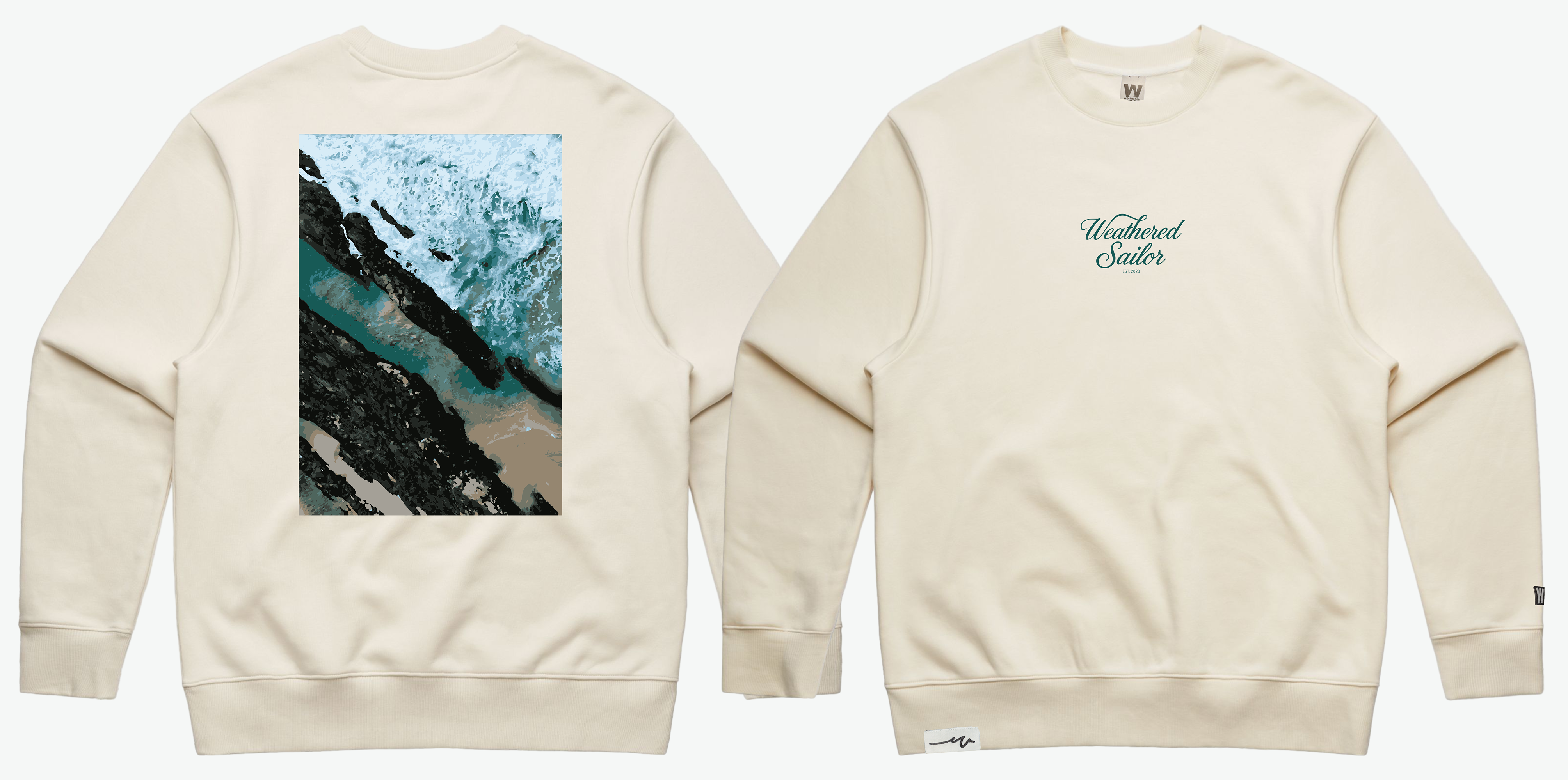 Puff-embroidered “Weathered Sailor” script centered on the chest — a refined, vintage-inspired accent that brings timeless elegance to a modern streetwear silhouette.