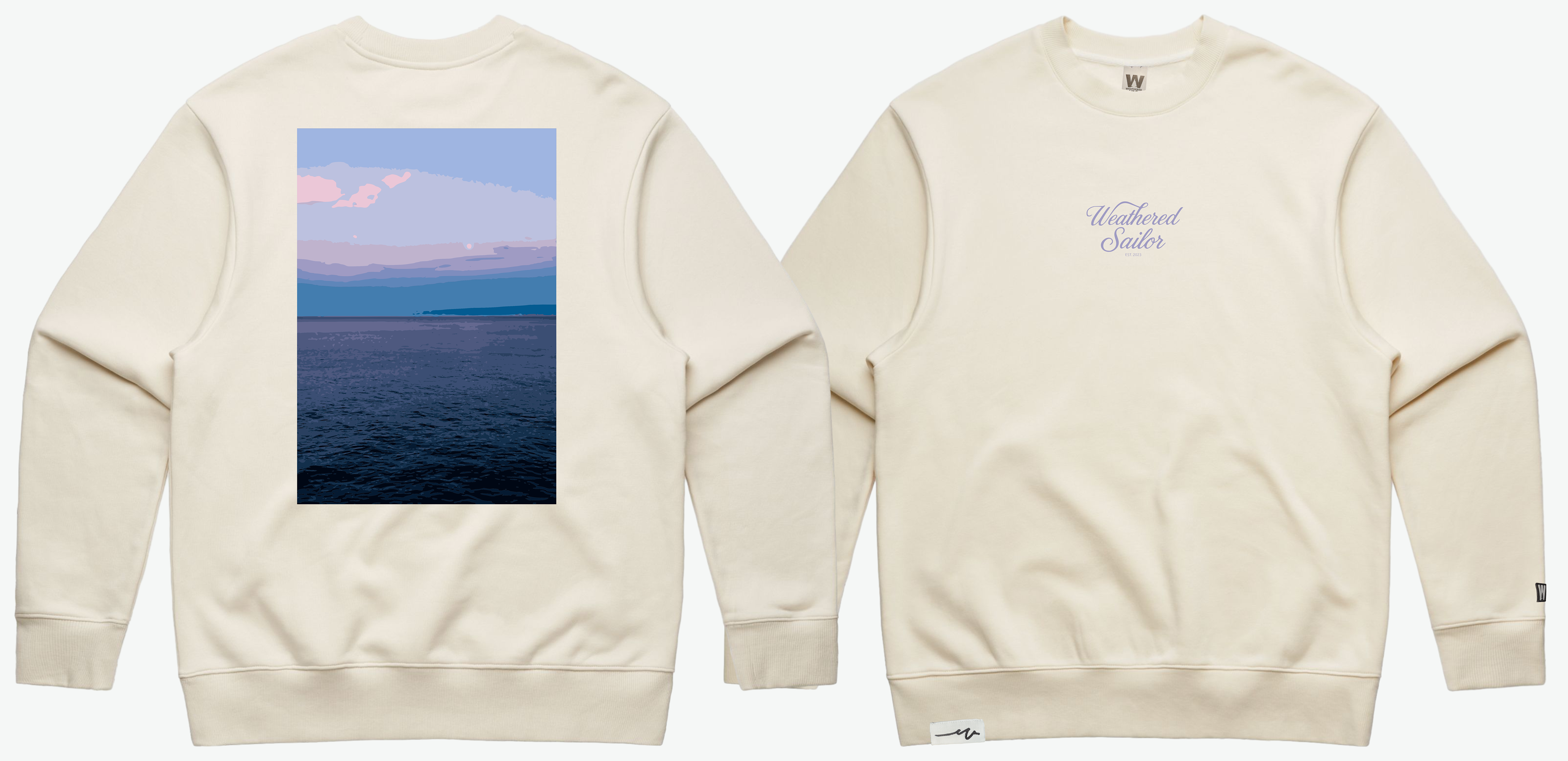 Puff-embroidered “Weathered Sailor” script centered on the chest — a refined, vintage-inspired touch that complements the clean lines and modern aesthetic.