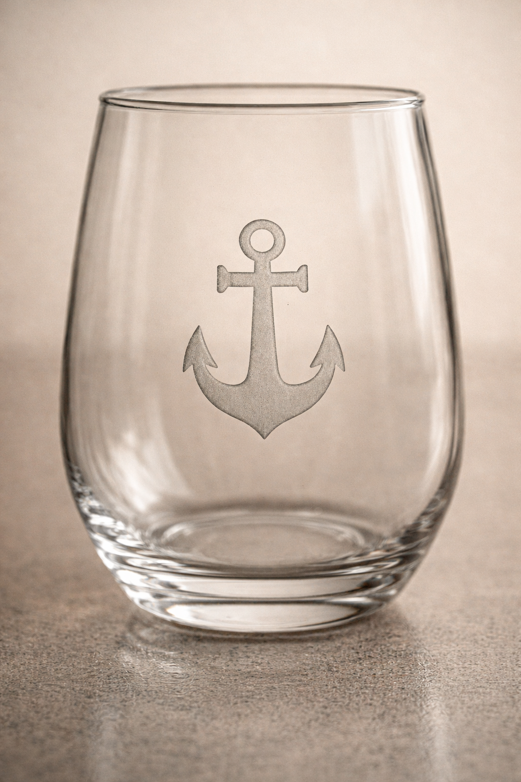 Engraved Anchor Stemless Wine Glass, 11.5oz