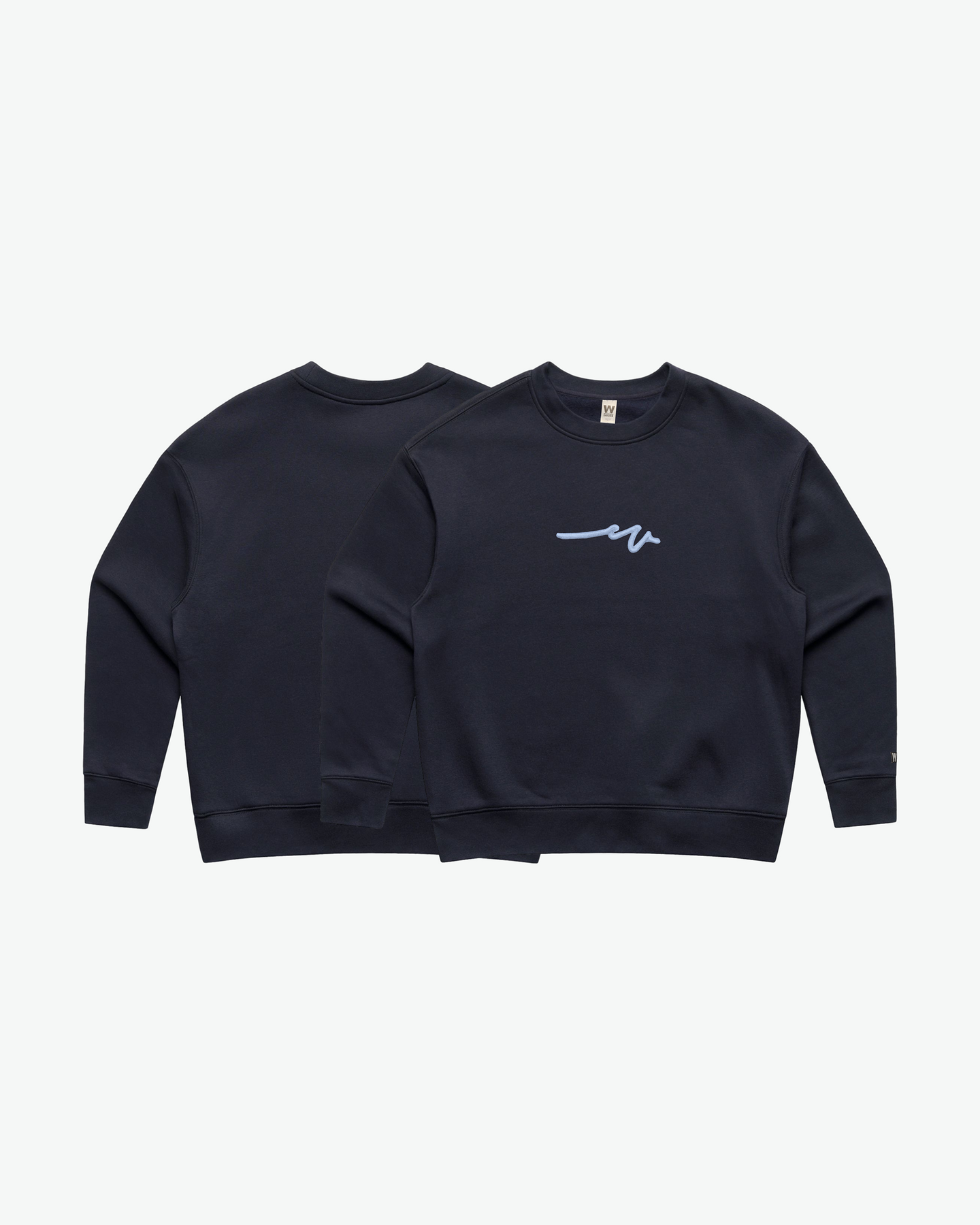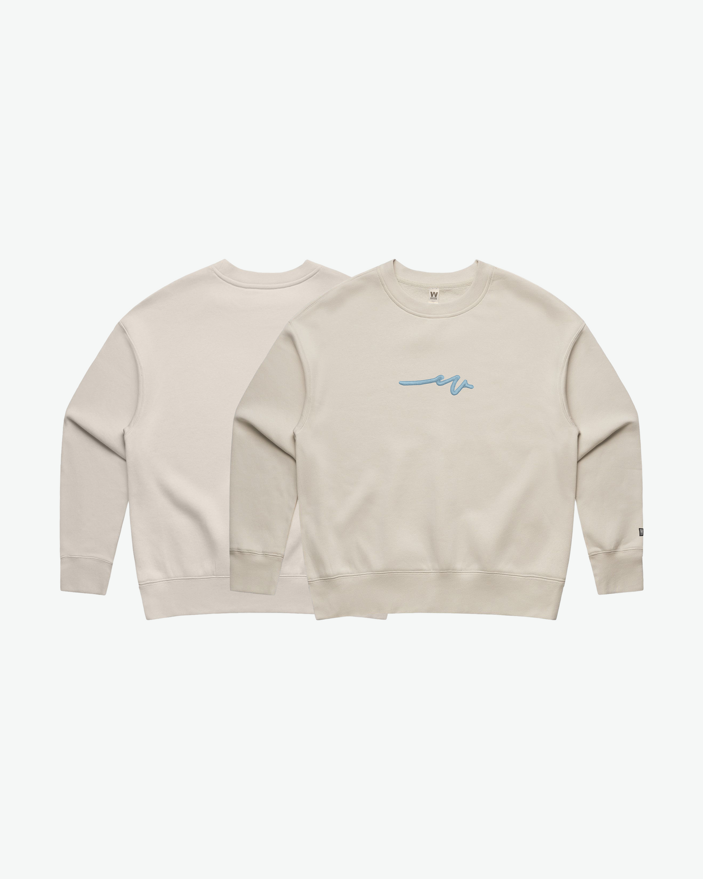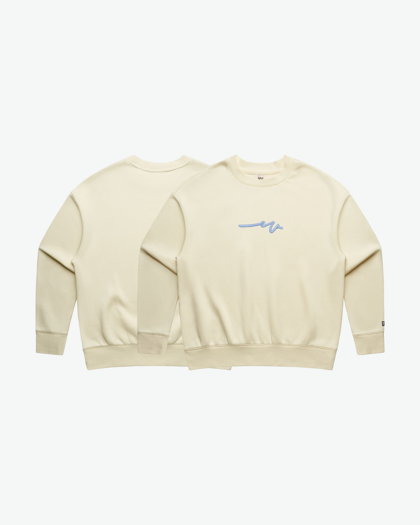 The baby blue puff satin embroidery of the sketchy W brings a cool, refined contrast to each colorway, catching light with subtle depth and sheen. Finished with the OG W patch on the sleeve and a satin inside neck label, every detail is intentional — understated yet full of character.
